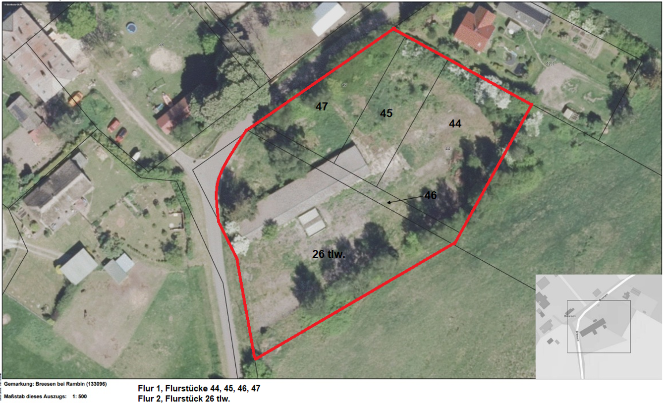 | Gemarkung, Flur, Flurstück | Breesen, Flur 1, 44, 45, 46, 47, Flur 2, 26 tlw. |