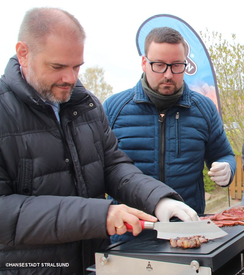 Zwei junge Stralsunder verbindet eine gemeinsame Leidenschaft: leckeres und hochwertiges Fleisch. Es genügt ihnen nicht, dass sie jede Woche im Garten am Grill stehen, oder sich ein Steak in der Pfanne braten. Nein, sie haben aus ihrer Passion einen Laden gemacht, „der Fleischladen“. Zu finden ist der auf dem Gelände des Tribseer Centers an der Rostocker Chaussee. Dort gibt es alles, was das Fleisch- und Barbecue-Herz begehrt. Davon konnte sich Oberbürgermeister Alexander Badrow bei seinem jüngsten Unternehmensbesuch überzeugen.