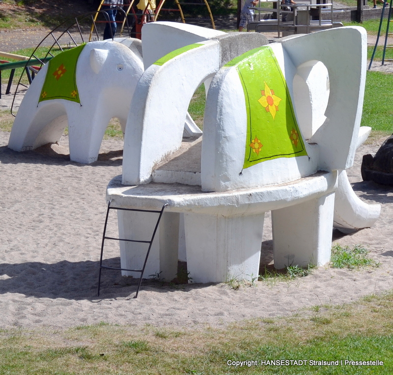 Wer kennt sie nicht, die Elefanten aus Beton im Stralsunder Zoo? Generationen von Eltern haben ihre Kinder oben auf einen der Rutsch-Elefanten gesetzt, um dann DAS Foto fürs Familienalbum zu machen.