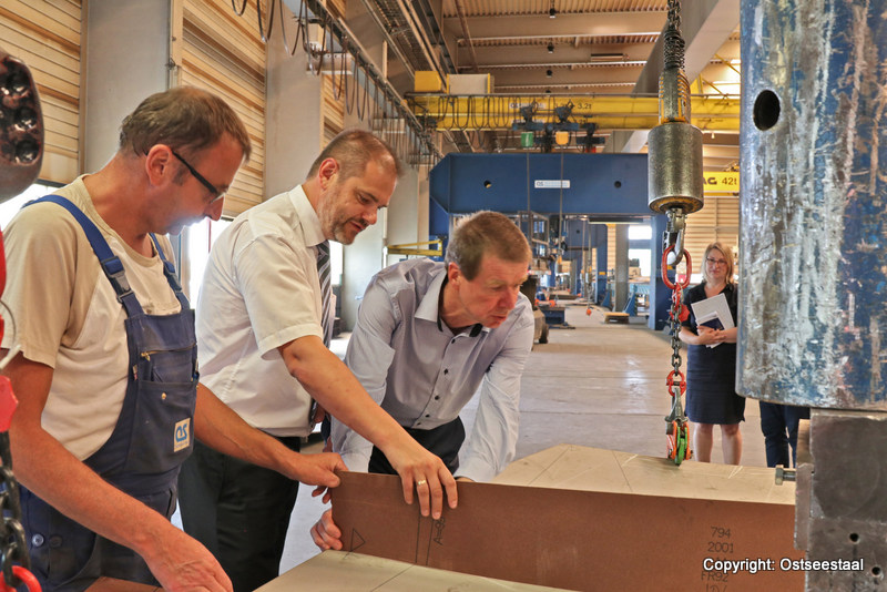 Oberbürgermeister Dr. Badrow zeigte sich beeindruckt, wie es Ostseestaal gelungen ist, neben dem traditionellen Kerngeschäft, der 3D-Kaltverformung von Blechen für die maritime Industrie, weitere Geschäftsfelder zu erschließen. „Ostseestaal belegt beispielhaft, wie sich mittelständische Firmen am Standort Stralsund dem harten internationalen Wettbewerb stellen und mit innovativen Produkten auf dem Markt behaupten. Der Erfolg strahlt auf die Region aus und macht Ostseestaal zu einem attraktiven Arbeitgeber, der jungen Menschen eine berufliche Perspektive bietet.“