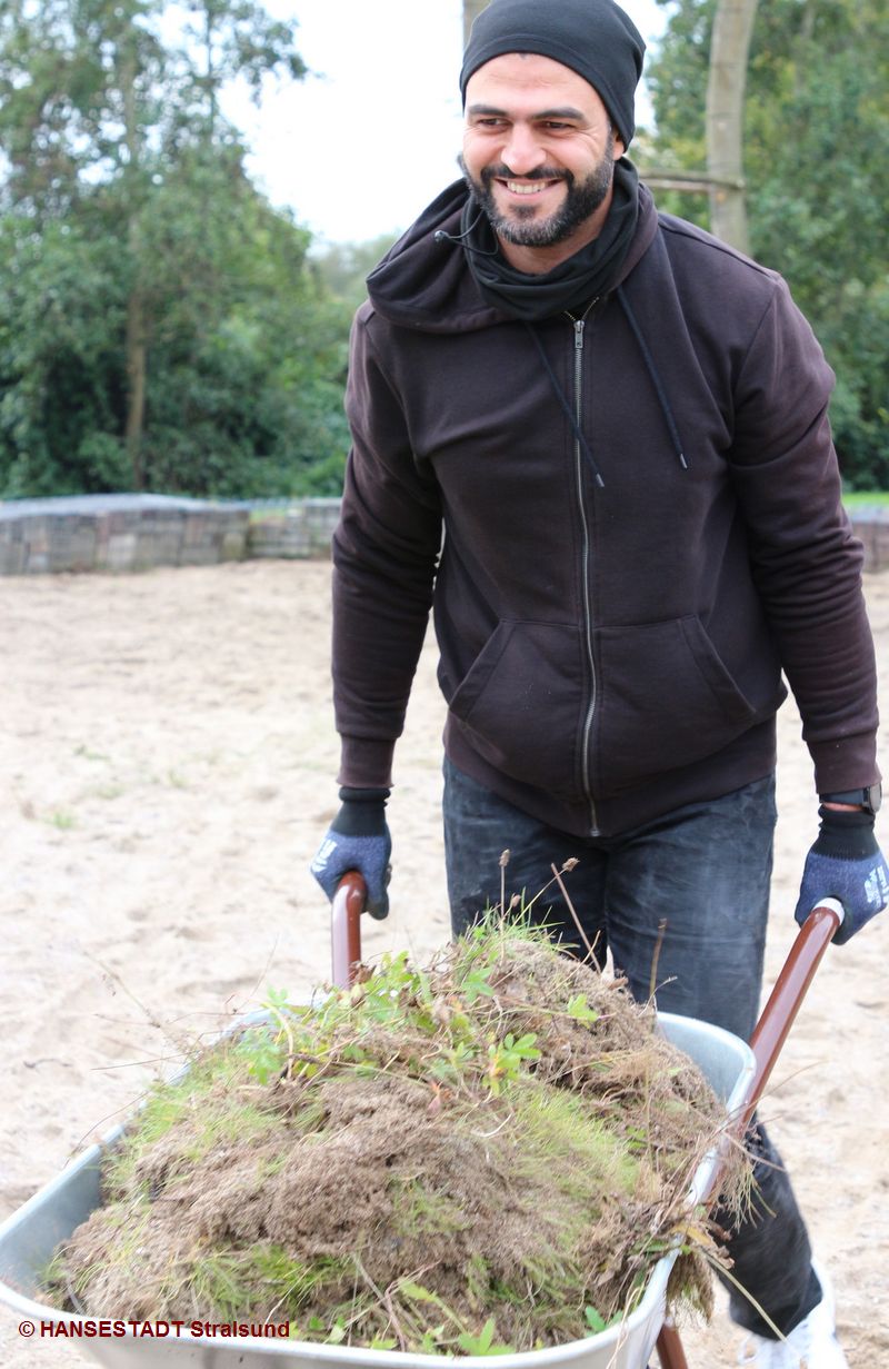 War es beim ersten Mal einer in der Alten Richtenberger Straße, beim zweiten Mal einer im Kurpark Devin, galt es jetzt, auf dem Skaterpark im Stadtteil Grünhufe die Flächen von Unkraut und Gras zu befreien.