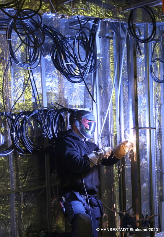 Diese Woche überzeugte sich Oberbürgermeister Alexander Badrow direkt vor Ort davon, dass der Weiterbau am Kreuzfahrtschiff „Endeavor I“ wieder angelaufen ist. Über 600 Leute arbeiten hier in wechselnden Schichten - auch über den Jahreswechsel. Derzeit vor allem Elektriker und Rohrschlosser. Manche von ihnen wurden sogar von den anderen Standorten in Rostock und Wismar abgezogen, um die Stralsunder Kollegen zu unterstützen. Und dennoch sind viele der Arbeitsplätze in Gefahr.