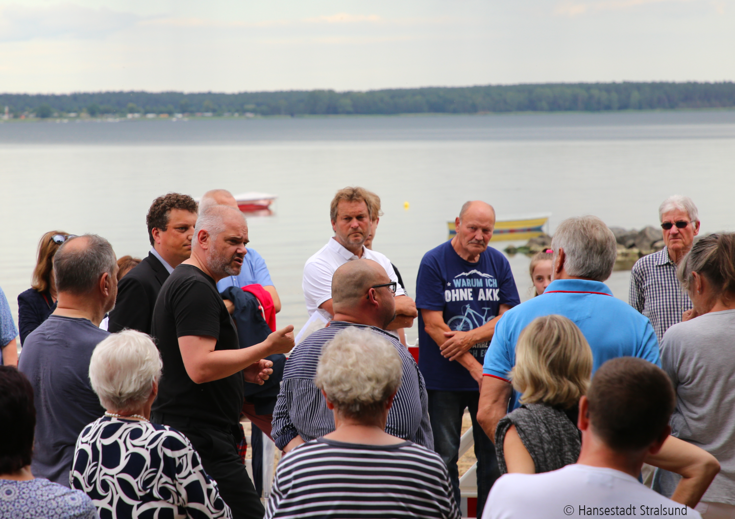 Heute (06. Juli) fand am Deviner Strand eine Bürgerversammlung zur aktuellen Sandaufschüttung statt, zu der neben Mitgliedern der Stralsunder Bürgerschaft auch Oberbürgermeister Alexander Badrow gekommen war.