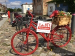 ausrangierte Fahrräder mit bunten Blumenkisten am Lenker oder Gepäckträger.