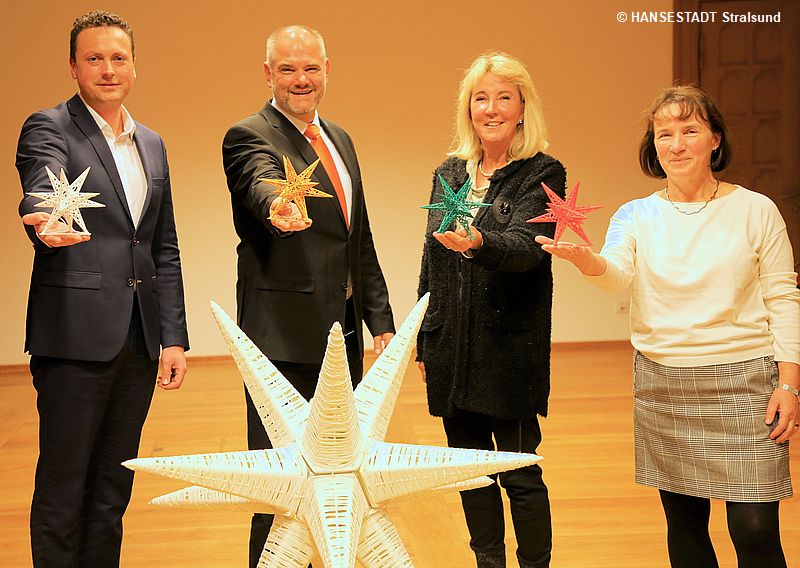 Doch auch wenn der Oberbürgermeister als Initiator und Ideengeber die Zügel in der Hand hält, geht es in der Umsetzung natürlich nur im Team. Sein Dank geht darum u.a. an die Mädels und Mannen im Amt für stadtwirtschaftliche Dienste für den Aufbau der Sterne, an die Stadtwerke und die REWA für die Unterstützung bei der Anschaffung und an masson für die Produktion. „Das enorme Engagement und die monatelange Vorbereitung sind der schönste Beweis, dass die Stralsunderinnen und Stralsunder wissen, worauf es in unserer Hansestadt am meisten ankommt: den Zusammenhalt“, meint Alexander Badrow.