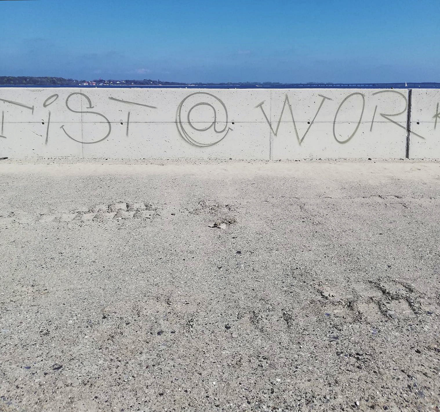 Aber an dem ist nicht so: Auf der Baustelle "Freizeitbereich Sundpromenade" wird zur Zeit eine Betonwand für ein langgestrecktes Graffiti vorbereitet. Im Auftrag der Hansestadt Stralsund. Die Arbeiten werden dabei vom Graffiti-Künstler auch am Wochenende und vor allem tagsüber ausgeführt.