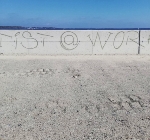 Vorarbeiten laufen: Graffiti an Betonwand im "Freizeitbereich Sundpromenade"