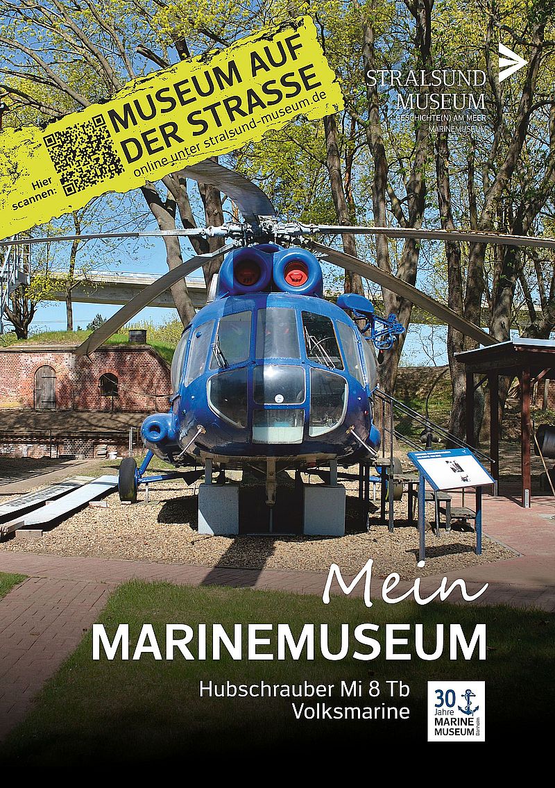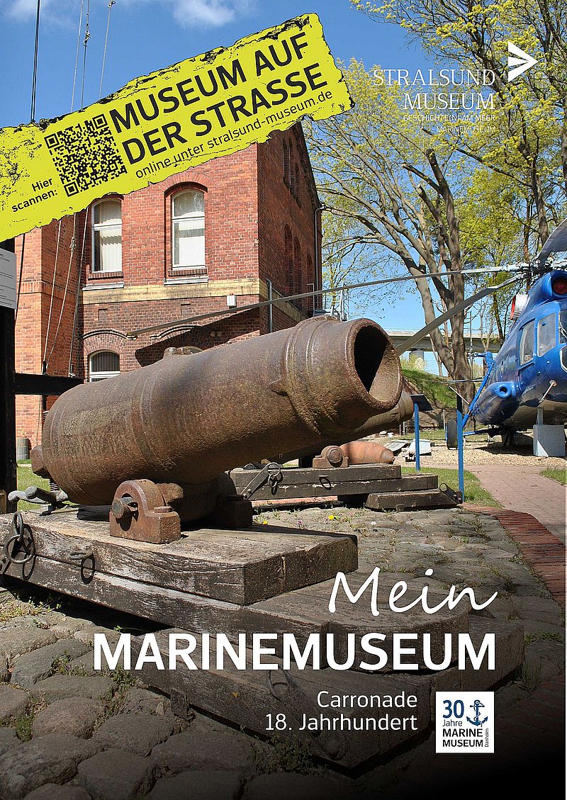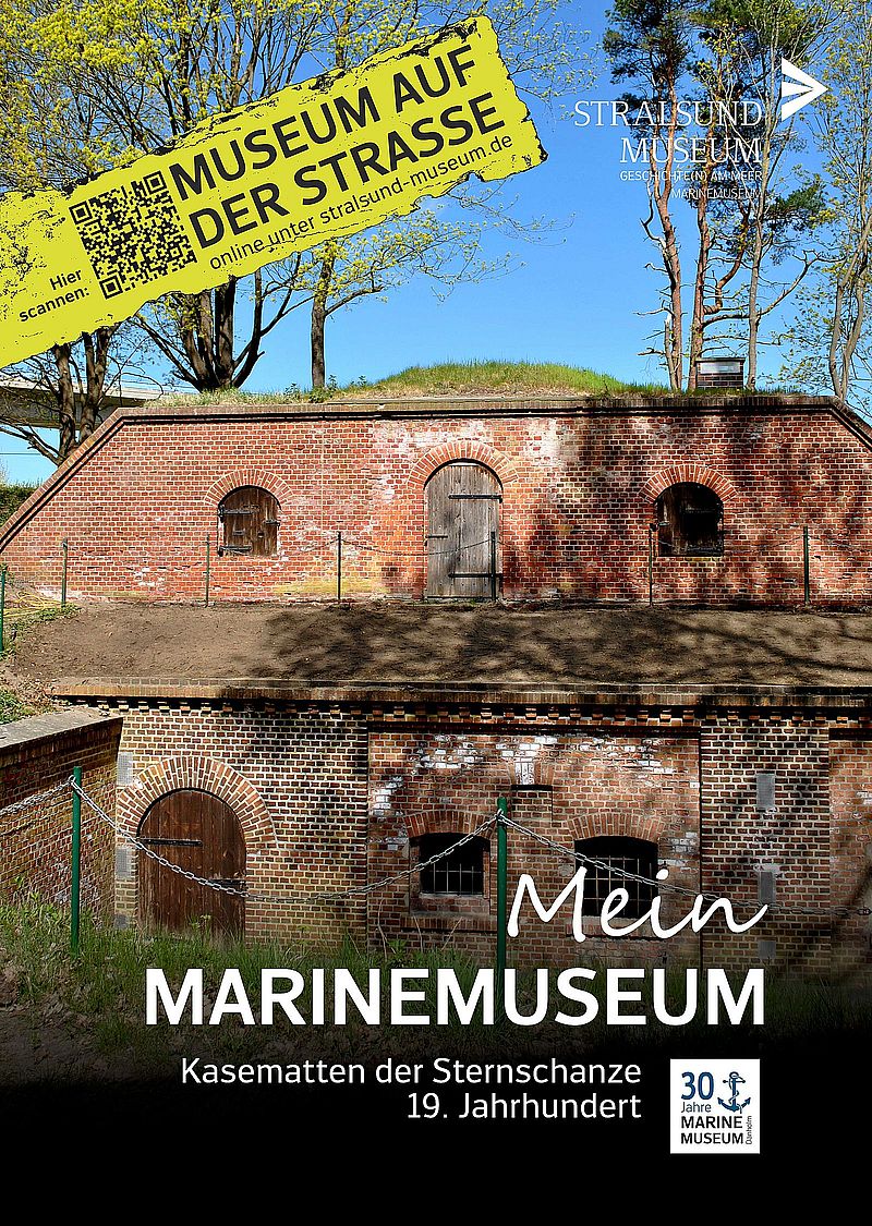 Begleitet wird das Jubiläum bereits seit Anfang Juli vom „Museum auf der Straße“. Die Ausstellung „Mein Marinemuseum“ zeigt sieben umfassend auf Stralsunds Litfaßsäulen plakatierte Motive. QR-Codes verweisen auf kurze Filme, in denen Zeitzeuginnen und Zeitzeugen abwechslungsreiche Geschichten und Wissenswertes aus Stralsunds Marinegeschichte erzählen.