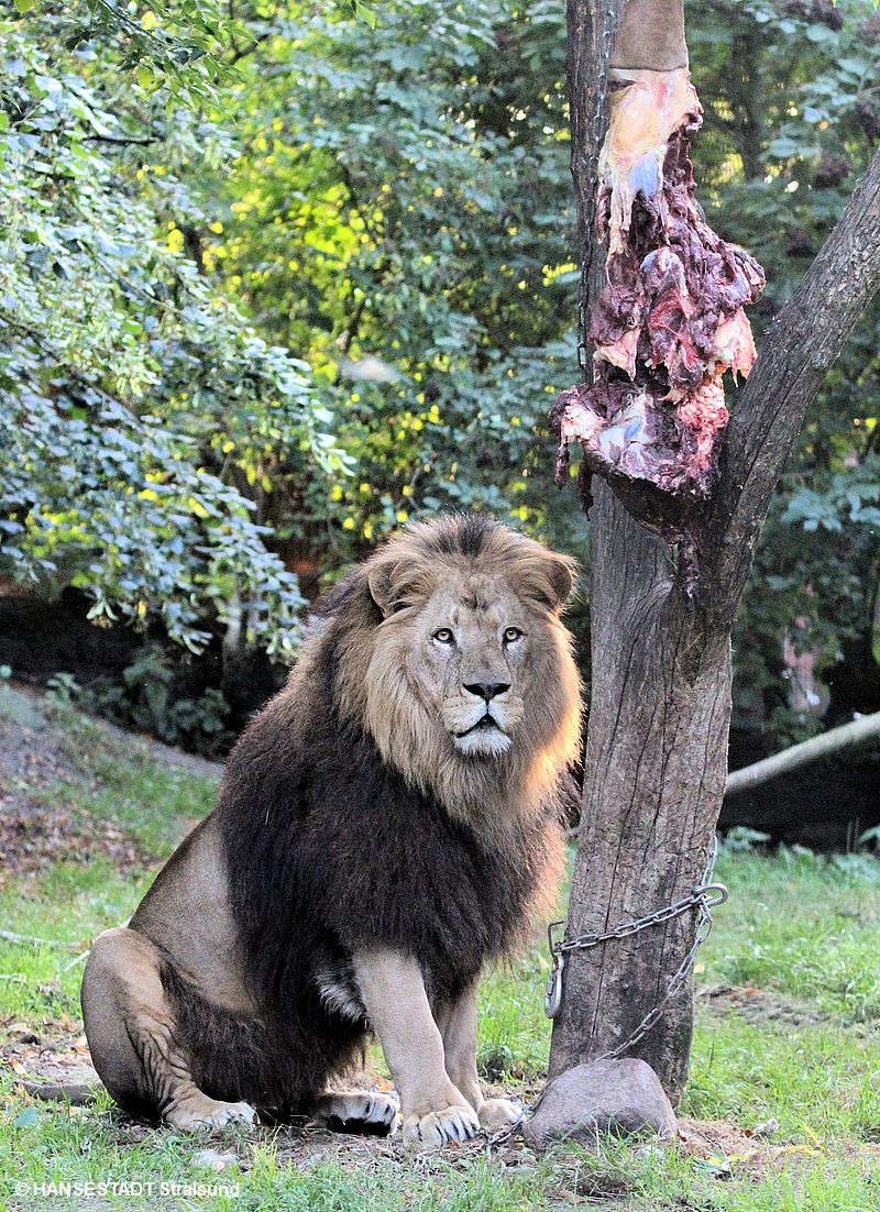 Wiederum die Tierpfleger des Katzenreviers setzen auf den König der Löwen Mufassa und die Löwin Lea und kredenzen ein opulentes Abendessen.