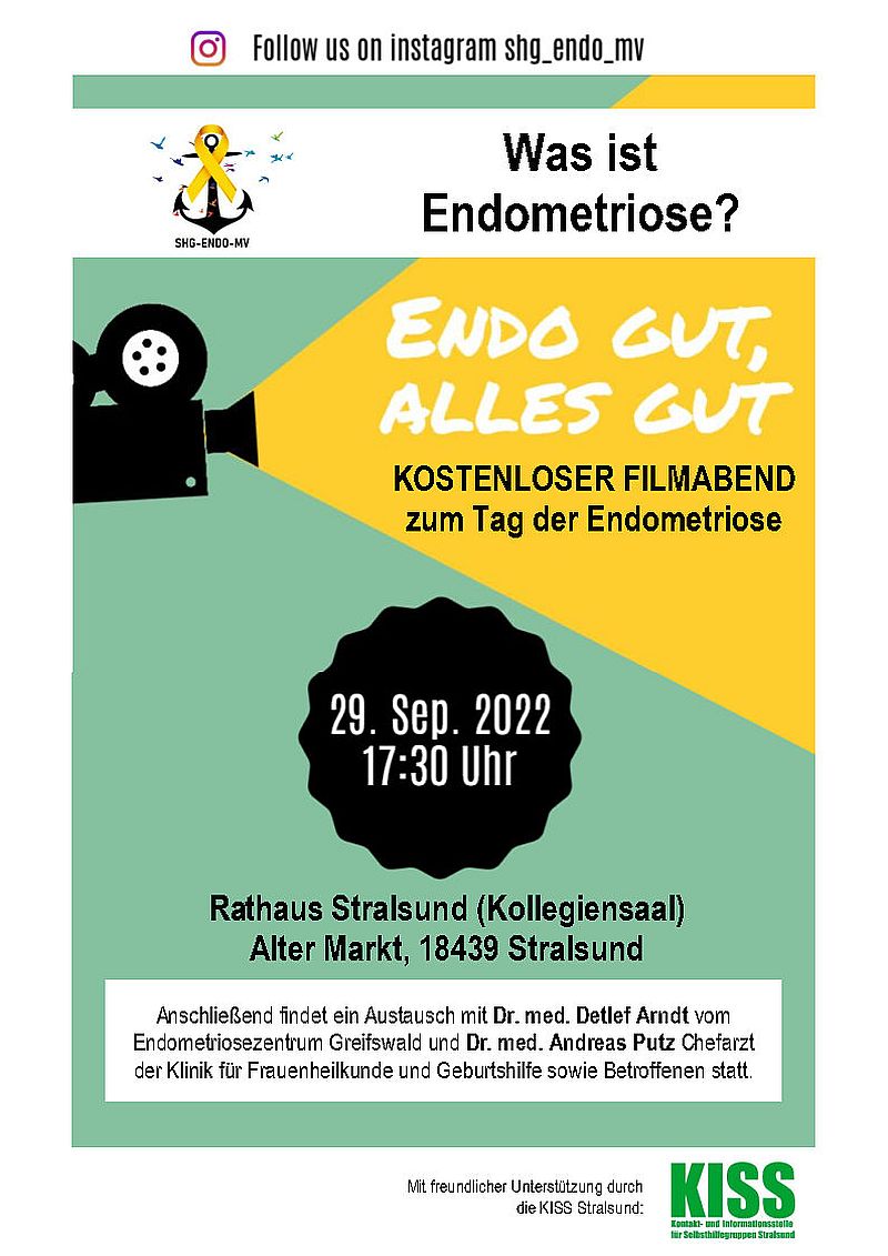 Zum Tag der Endometriose stellt die Selbsthilfegruppe „Endometriose M-V“ in Zusammenarbeit mit der Kontakt- und Informationsstelle für Selbsthilfegruppen Stralsund (KISS) den Mutmachfilm „Endo gut, alles gut“ vor. Gezeigt werden verschiedene Geschichten von Patientinnen mit Endometriose, um auf das Krankheitsbild mit den vielen Symptomen aufmerksam zu machen. Im Film berichten auch Expert:innen, was Betroffene gegen die Beschwerden tun können.