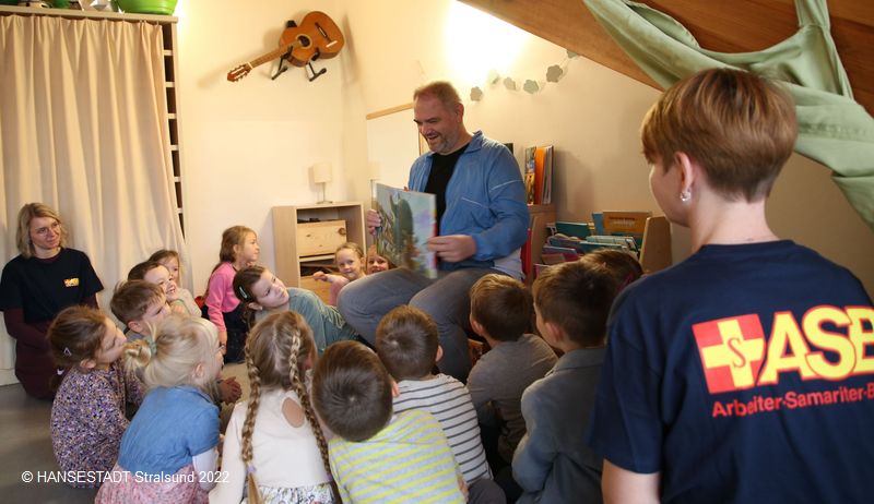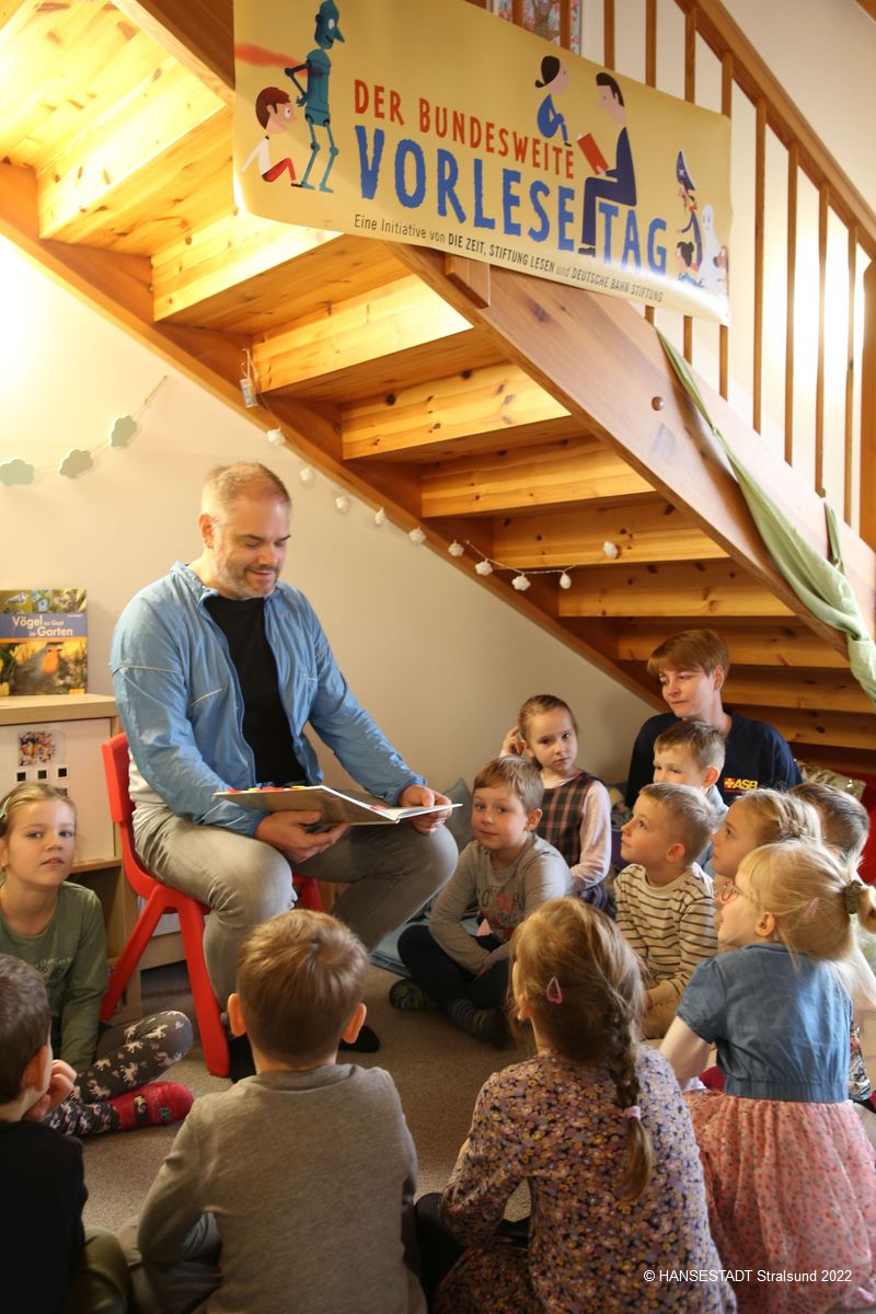 Oberbürgermeister Alexander Badrow rückt durch sein Vorleseengagement in Stralsund die Bedeutung des Vorlesens dabei erneut in den Mittelpunkt. Die Mitarbeiterinnen der Kinderbibliothek unterstützen diesen Tag dabei aktiv als Lesebotschafterinnen in Stralsunds Grundschulen.