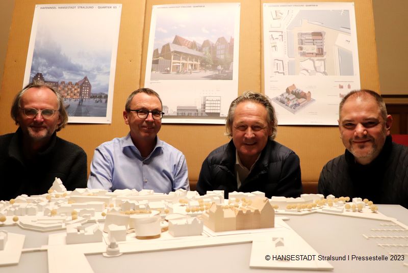 Oberbürgermeister Alexander Badrow: „Ich freue mich, dass die Entscheidung auf diesen architektonisch pfiffigen Entwurf gefallen ist und damit endlich Leben in und zwischen die alten Speicher kommt. Zusammen mit dem OZEANEUM, der Gorch Fock und der neuen Freitreppe wird unsere Hafeninsel nicht nur zu einem Publikumsmagneten, wie es derzeit kaum einen zweiten in Stralsund gibt - sie bildet auch den Auftakt für die Entstehung eines neuen Stadtteils entlang der Waterkant bis runter zur Rügenbrücke. Das Quartier 65 ist in vielerlei Hinsicht ein Highlight in unserer seeseitigen Stadtentwicklung. Ich gratuliere den Investoren zu ihren großartigen Ideen und - vor allem - zu ihrem großen Mut.“