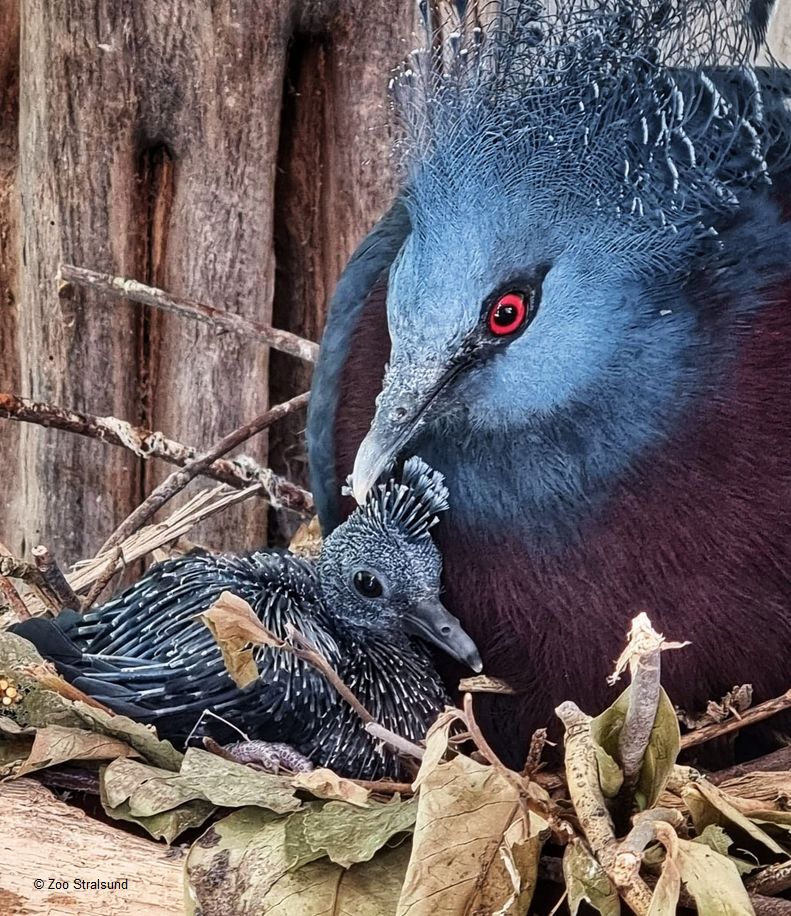 Aber auch bei den gefiederten Bewohnern wurde nach zwei Jahren die Nachwuchsflaute bei den Viktoriakronentauben, der größten Taubenart der Welt, durchbrochen.