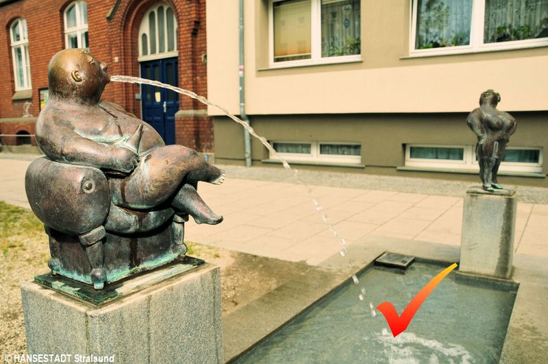 Im Stadtgebiet von Stralsund erfreuen uns jedes Jahr aufs Neue diese Brunnen und Wasserspiele: das Wasserspiel auf dem Alten Markt, die Fontäne im Knieperteich, der Brunnen „Die lustigen Weiber“ in der Fährhofstraße und der Brunnenlauf am Trelleborger Platz.