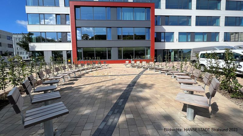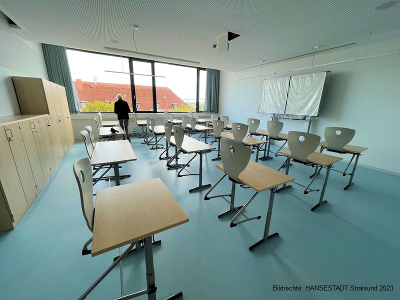 Bis der gesamte Campus fertiggestellt ist, fließt noch eine ganze Menge Ostseewasser den Sund entlang: Wo jetzt als Nächstes fleißig dran gebaut wird, dass ist das sogenannte Frankenkronwerk gleich nebenan . Wenn Anfang 2025 alles fertig ist, dann soll hier die Mensa sein, dazu weitere Klassenräume und Büros. Ganz zum Schluss werden die Freianlagen neu gestaltet, damit das Ganze dann auch optisch und funktional eine Einheit bildet. Das soll dann Ende 2025 alles fertig werden.