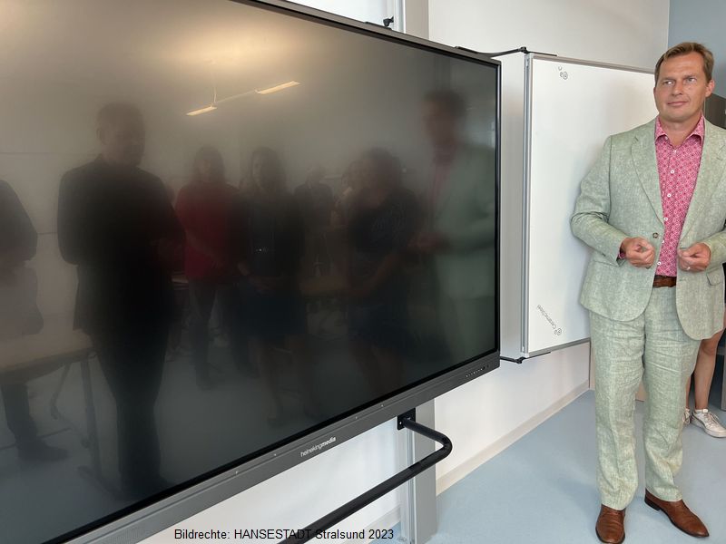 "Was hier gebaut wurde, ist einfach großartig", so Oberbürgermeister Alexander Badrow bei einem Rundgang durch die Schule. "Zumal wir im Kostenrahmen geblieben sind und rechtzeitig zum Schuljahresbeginn so gut wie alles fertig ist."