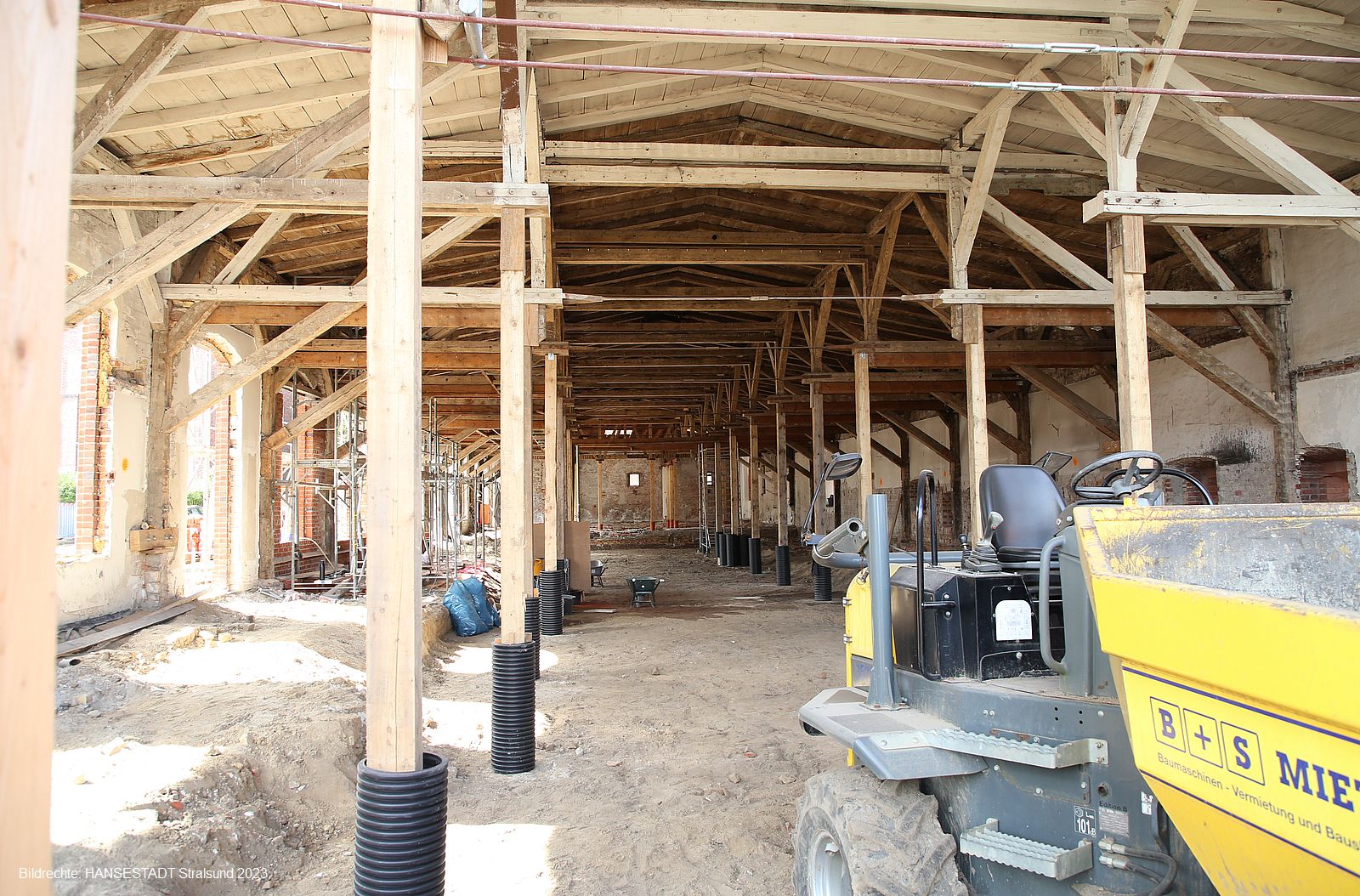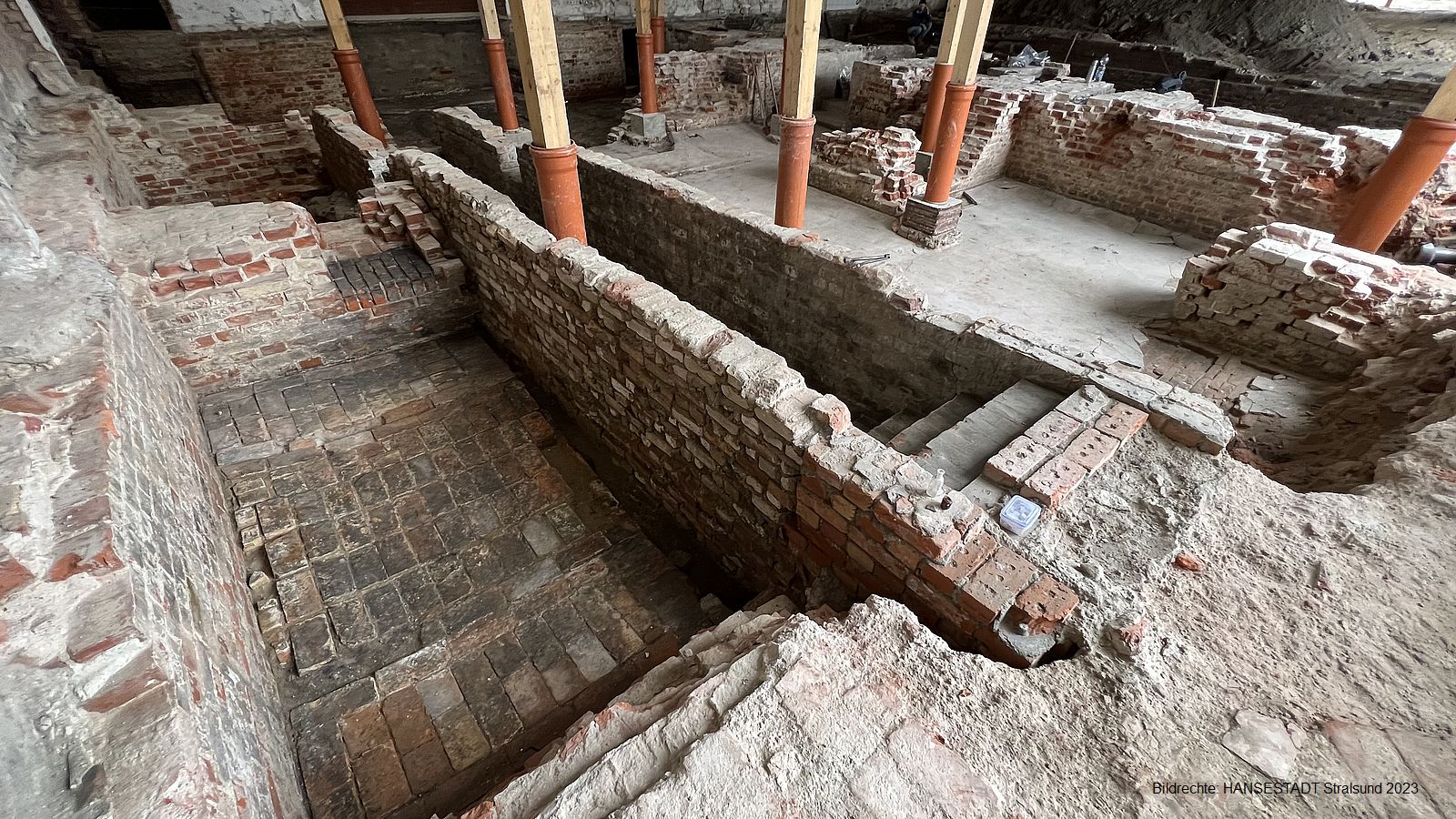 Bevor das Ganze in die Tat umgesetzt werden kann, muss das historisch wertvolle Gebäude aus dem 19. Jahrhundert völlig entkernt werden, inklusive Bodenausschachtung. Dazu gehört es auch, alte Mauern freizulegen, die für die Verteidigung aus dem Frankenkronwerk heraus wichtig waren. So wurde in den letzten Wochen die komplette Struktur eines Teils der früheren Verteidigungsanlage sichtbar. Die muss in wenigen Tagen den Bauarbeiten weichen, da für die Statik Bohrpfähle im Untergrund versenkt werden müssen.