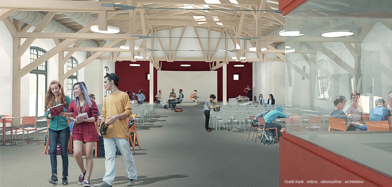 Inzwischen der Hansestadt Stralsund gehörend, ist der Plan, dort für das SCHULZENTRUM AM SUND eine Mensa zu bauen. Schließlich hat die Schule bald 1.200 Schülerinnen und Schüler und dazu eine ganze Menge Lehrerinnen und Lehrer, da reicht der bisherige Essentrakt nicht mehr aus.