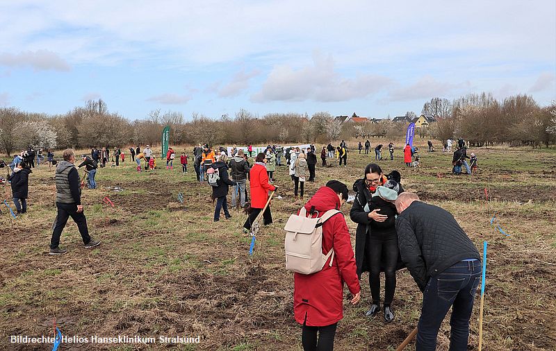 Knapp 500 Kinder, Eltern und Großeltern haben sich an der Pflanzaktion des Helios Hanseklinikum und der Hansestadt Stralsund am letztenWochenende (23. März) beteiligt. Gemeinsam pflanzten sie 802 Setzlinge für jedes im Jahr 2023 geborene Kind und sorgten damit für eine bleibende Erinnerung an die Neugeborenen in Stralsund.