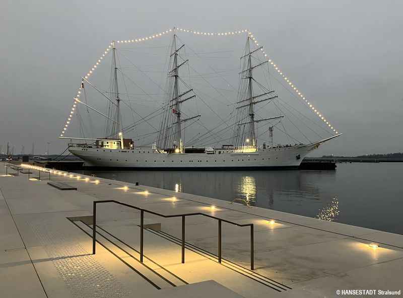 Mitte November hatte die Bürgerschaft der Hansestadt Stralsund einen Prüfauftrag an die Verwaltung beschlossen. Dabei ging es um eine mögliche Beleuchtung der Gorch Fock 1 durch eine Lichterkette über die Mastspitzen.