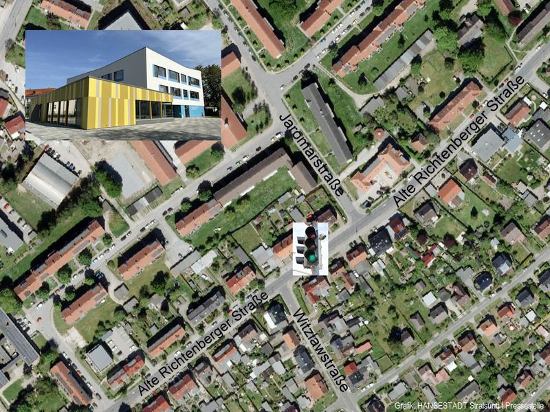 In der kommenden Woche ab dem 27. Januar beginnen in der Alten Richtenberger Straße zwischen Jaromar- und Witzlawstraße die Arbeiten zur Errichtung einer Ampel für Fußgängerinnen und Fußgänger.