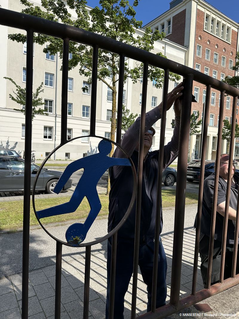 Sein Ziel: Im September, zur 165-Jahr-Feier des TSV 1860 Stralsund e.V., soll der Zaun wieder strahlend schön aussehen. Dafür legt sich Mario Kramm mächtig ins Zeug und widmet sich den aktuell noch braun lackierten Eisenstäben sowie den blauen Sportpiktogrammen. „Krammi“, wie er inzwischen von Sportplatzwart Carsten Schmidt genannt wird, hat sich mit seinem Anliegen an die Stadtverwaltung gewendet. Die Unterstützung kam prompt: Das Amt für Schule und Sport stellt Werkzeug bereit und Farbe - natürlich in Stralsund-Rot!