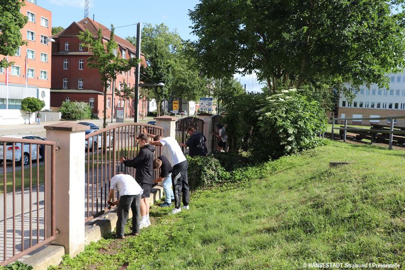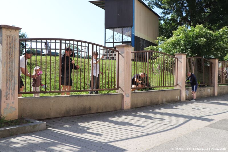 Da, wo der TSV 1860 daheim ist, ist inzwischen auch das zweite Zuhause von Mario Kramm. Der 65jährige hat es sich zur Aufgabe gemacht, den Zaun am "Stadion der Freundschaft" zu verschönern. Sein Ziel: Zur 165-Jahr-Feier des Vereins im Herbst will er fertig sein. Dafür hatte der Senior per Aufruf Unterstützung gesucht – und gefunden! Und so haben sich Stralsunder Bürger, Fußballspieler des TSV und Mitarbeiter des Amtes für Schule und Sport mit Schleifpapier, Spachtel, Putzlappen und Farbrolle an der Aktion beteiligt. Die jüngste Helferin war die vierjährige Luna, die gemeinsam mit ihrem Papa den alten Lack vom Zaun abgeschliffen hat. Mit Hilfe aller Freiwilligen ist Mario Kramm ein großes Stück vorangekommen. Fast alle Zaunfelder sind nun geschliffen. Wer ihm beim Streichen helfen will, findet den Neustralsunder fast täglich am Frankendamm.