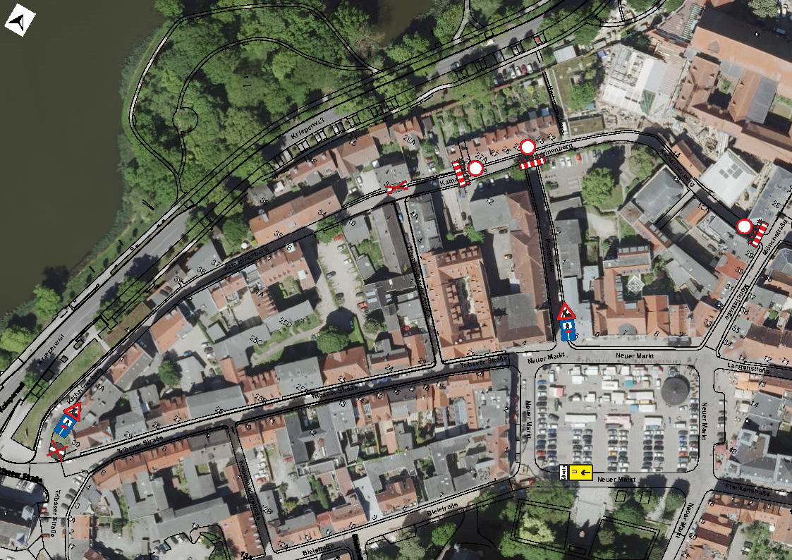 Für die Demontage werden ein Mobilkran und ein Transportfahrzeug, das die Bauteile des Turmdrehkrans abtransportiert, vor Ort aufgestellt. Dafür wird der Katharinenberg zwischen Mönchstraße und Henning-Mörder-Straße voll gesperrt. Da die An- und Abfahrt der Fahrzeuge ab Tribseer Straße über den Katharinenberg erfolgt, müssen hier zusätzlich Haltverbote eingerichtet und die Einbahnstraßenregelung aufgehoben werden.