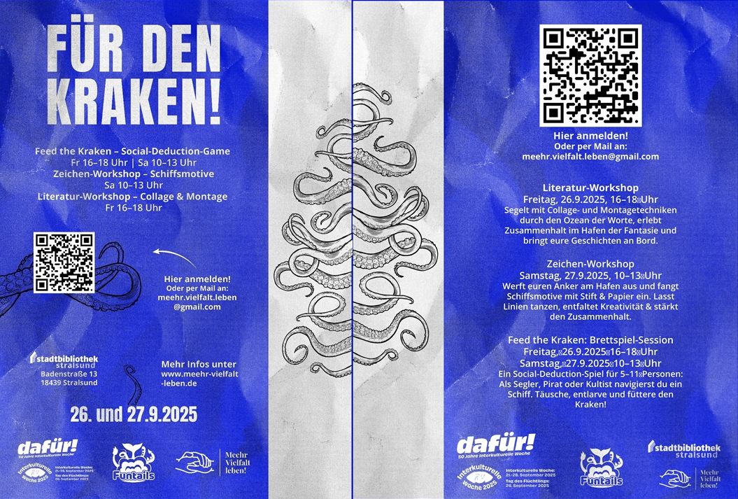 Die ehrenamtliche Initiative "Meehr Vielfalt Leben!" lädt in Kooperation mit der Stadtbibliothek Stralsund an zwei Tagen zu drei Workshops ein.