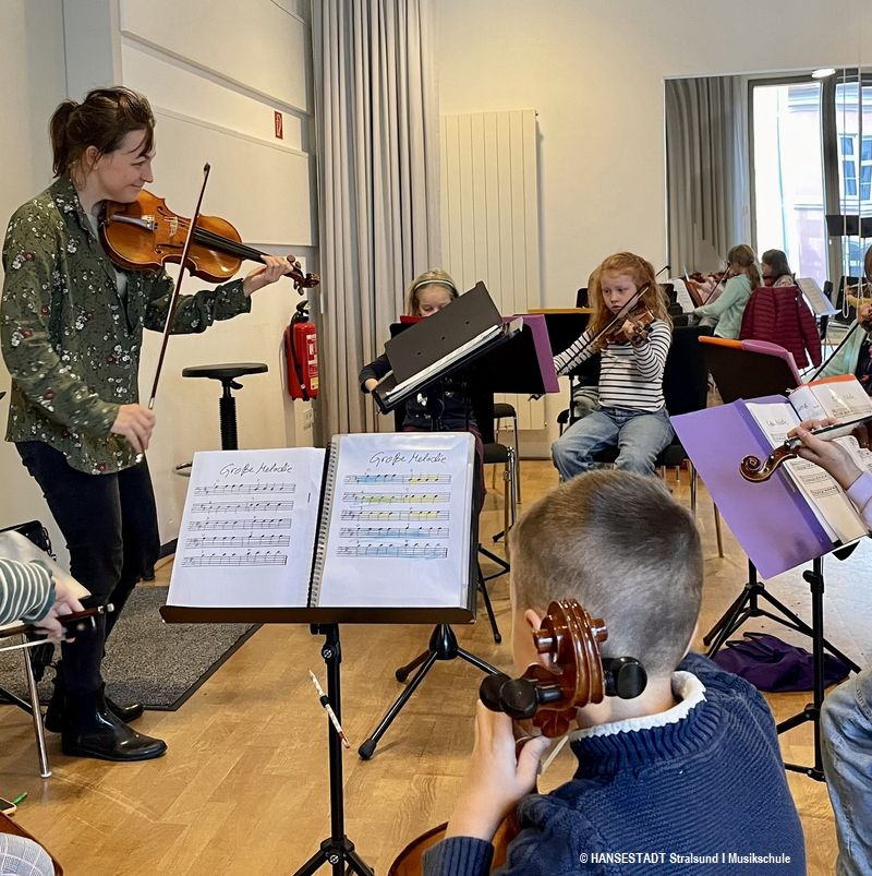 Die Musikschule Stralsund bietet seit diesem Schuljahr für die Kinder, die Streichinstrumente erlernen, ein weiteres Ensemble zum gemeinsamen Musizieren an.